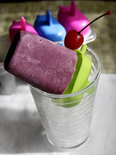 - Tiếp theo đổ hỗn hợp dâu tằm đã xay mịn vào khuôn làm kem, đậy kín nắp, để vào tủ đông đá từ 4 đến 5 tiếng.